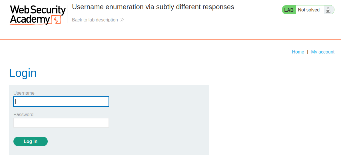 To solve the lab, enumerate a valid username, brute-force this user’s password, then access their account page.