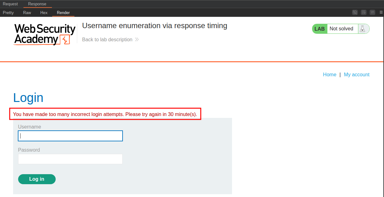 This lab is vulnerable to username enumeration using its response times. To solve the lab, enumerate a valid username, brute-force this user’s password, then access their account page.