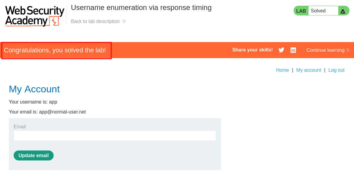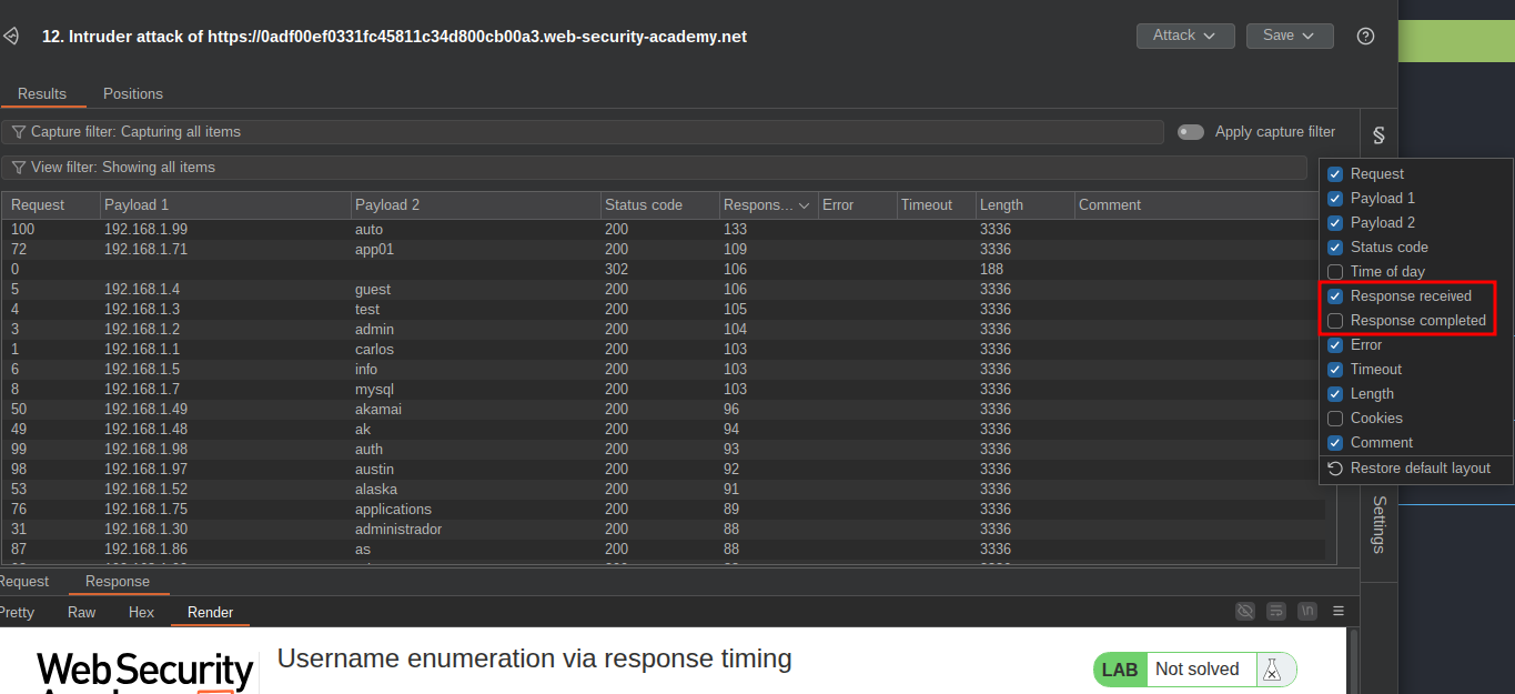 Lab 3 : Username enumeration via response timing: