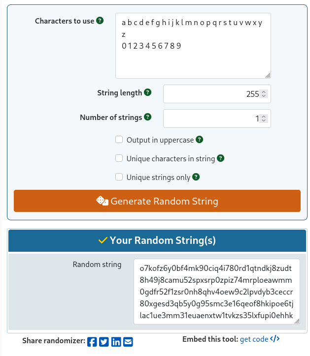 For generating random strings we can use: https://www.gigacalculator.com/randomizers/random-alphanumeric-generator.php