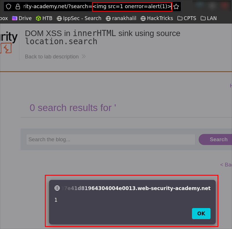 Lab 3: DOM XSS in innerHTML