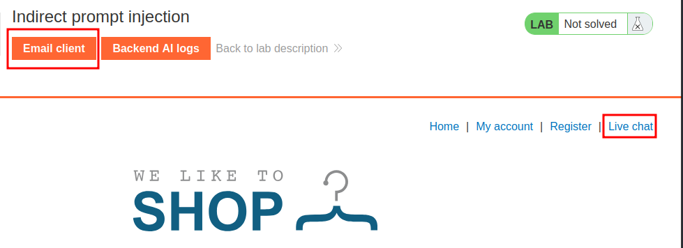 This lab is vulnerable to indirect prompt injection. The user carlos frequently uses the live chat to ask about the Lightweight “l33t” Leather Jacket product. To solve the lab, delete carlos. Required knowledge
