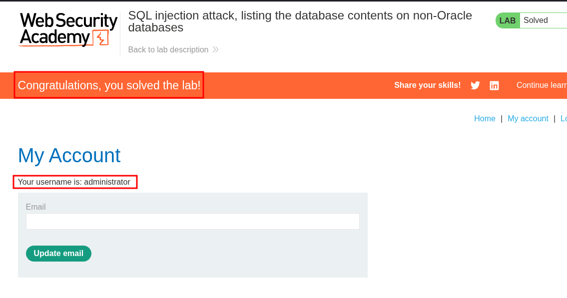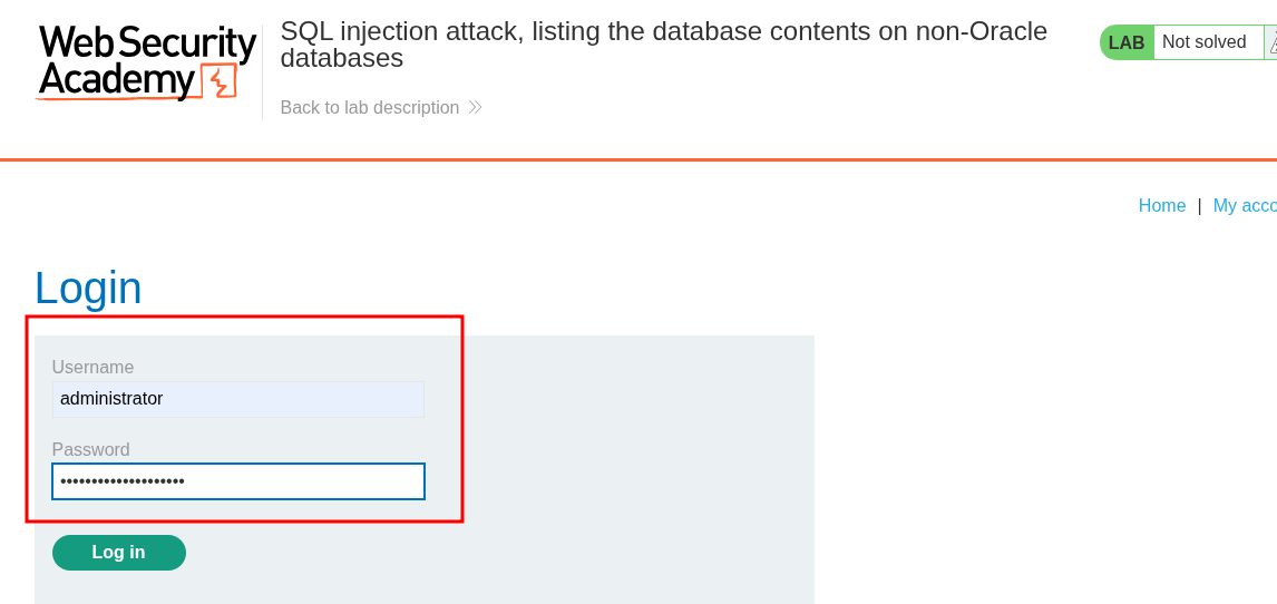 Lab 8: SQL injection attack, listing the database contents on non-Oracle databases: