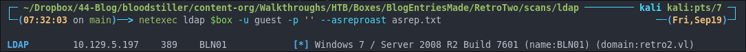 389/tcp open ldap Microsoft Windows Active Directory LDAP (Domain: retro2.vl, Site: Default-First-Site-Name)