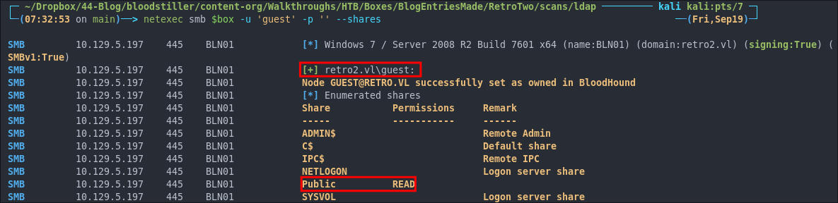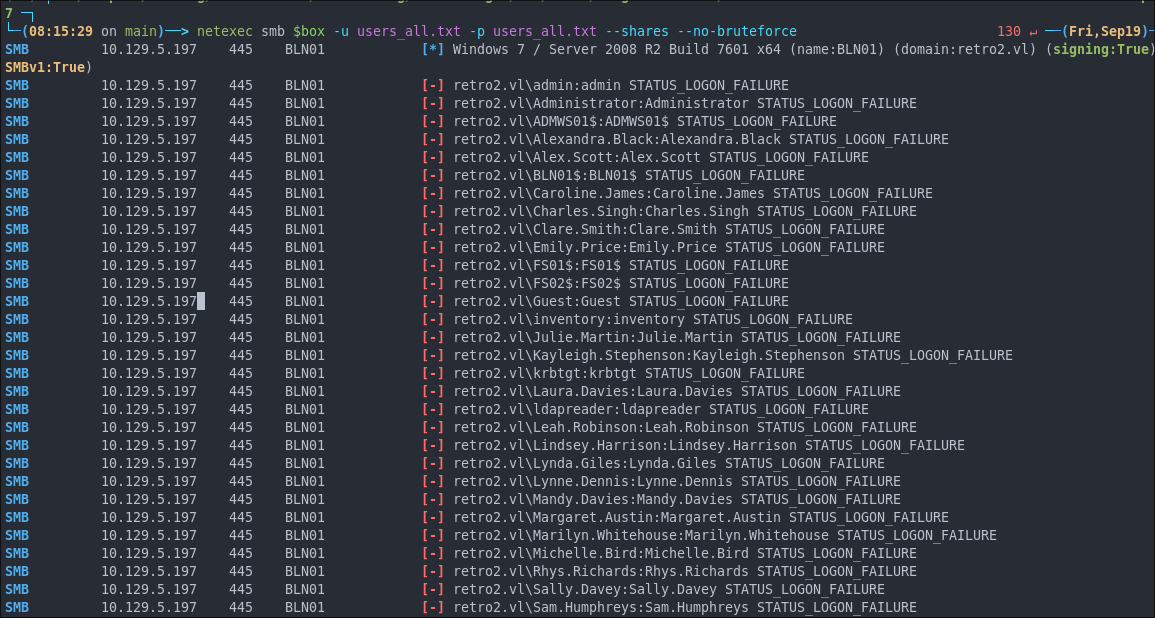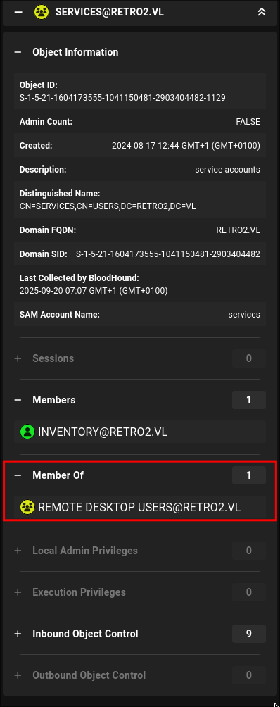 3268/tcp open ldap Microsoft Windows Active Directory LDAP (Domain: retro2.vl, Site: Default-First-Site-Name)